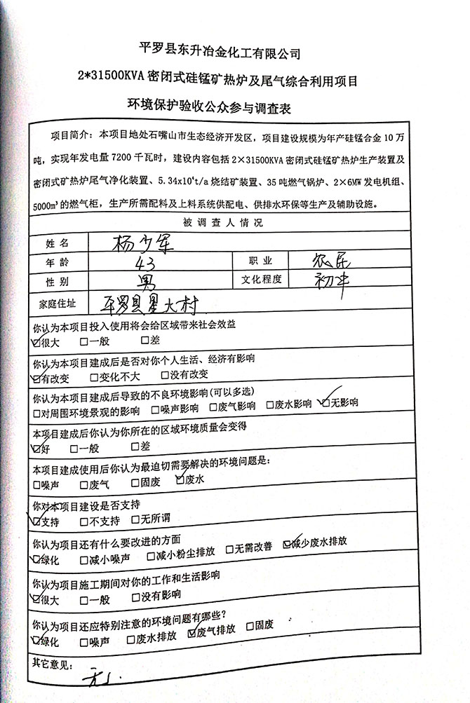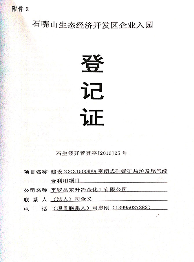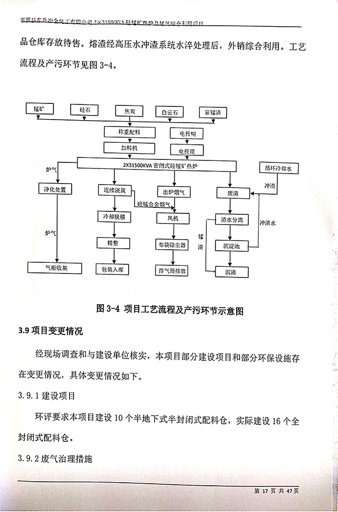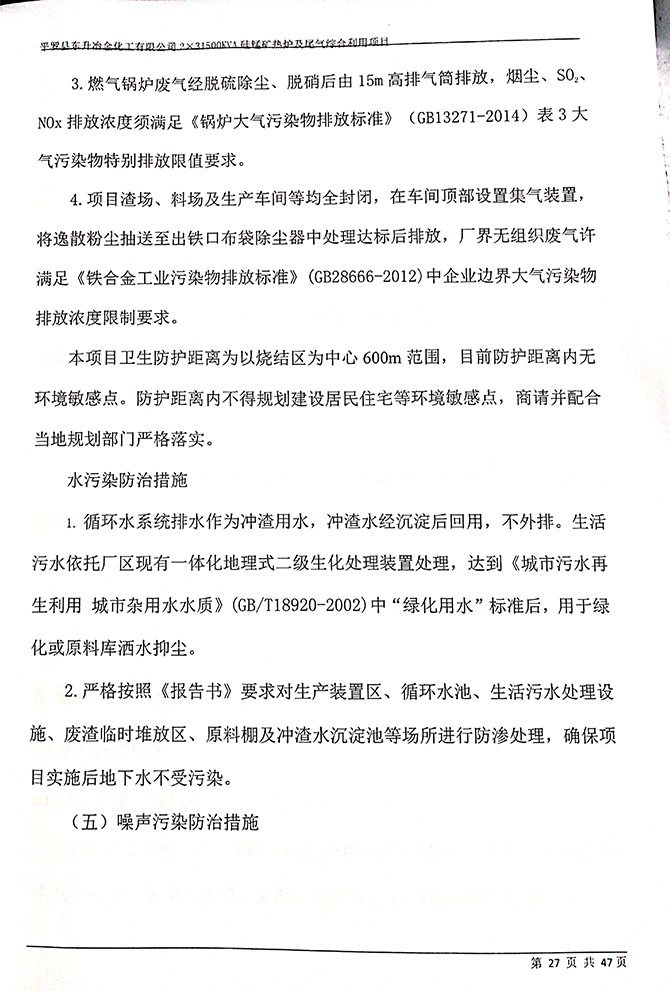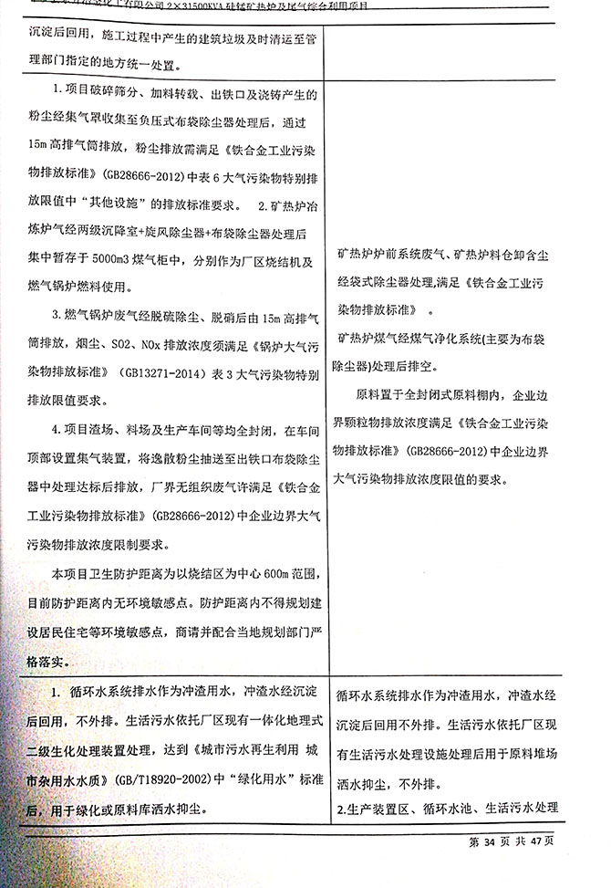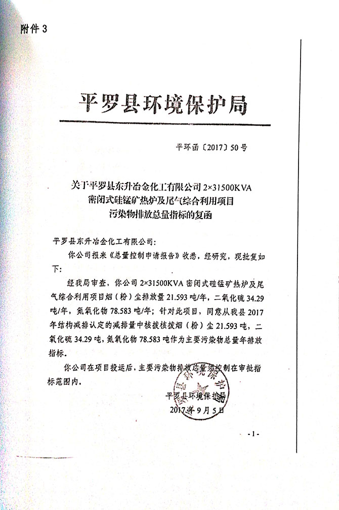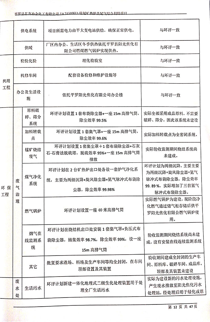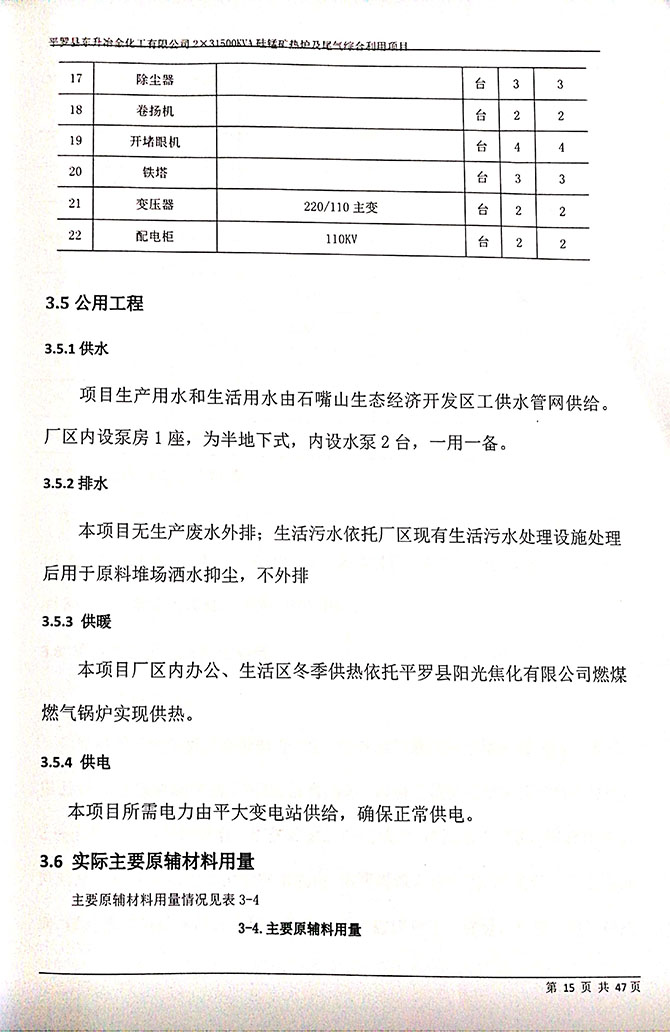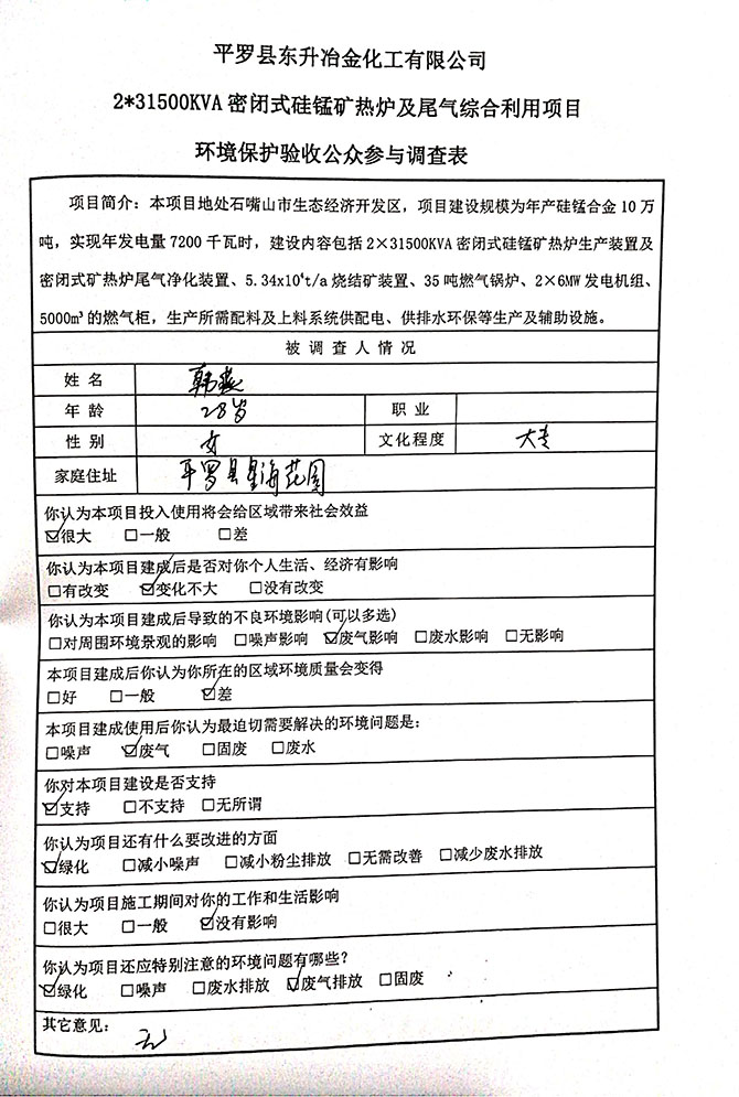 2019 年 5 月 19 日平罗县东升冶金化工有限公司组织环评方、竣工环 境保护验收监测单位及三位专家组成验收小组,对 2×31500KVA 密闭式硅 锰矿热炉项目(以下简称该项目)进行阶段性竣工环境保护验收,现将验 收意见公示如下: