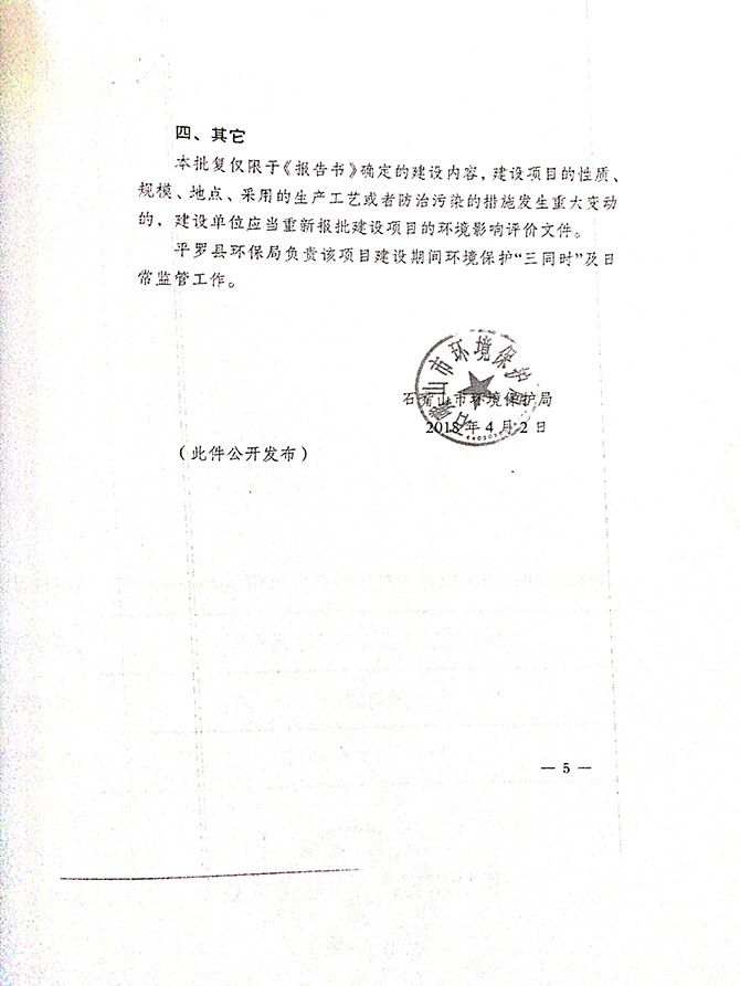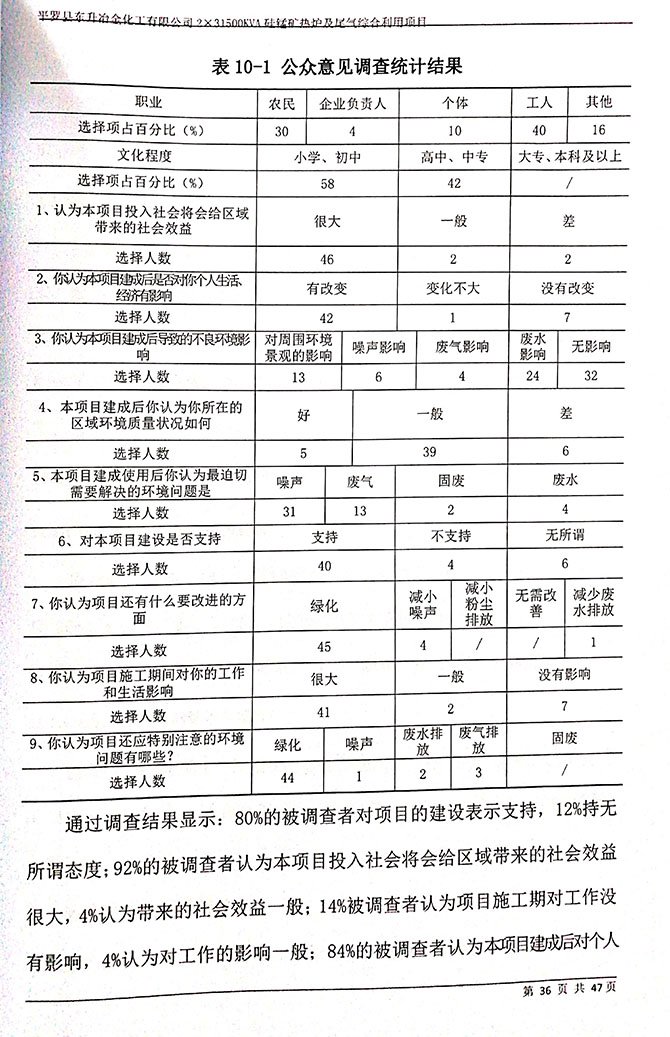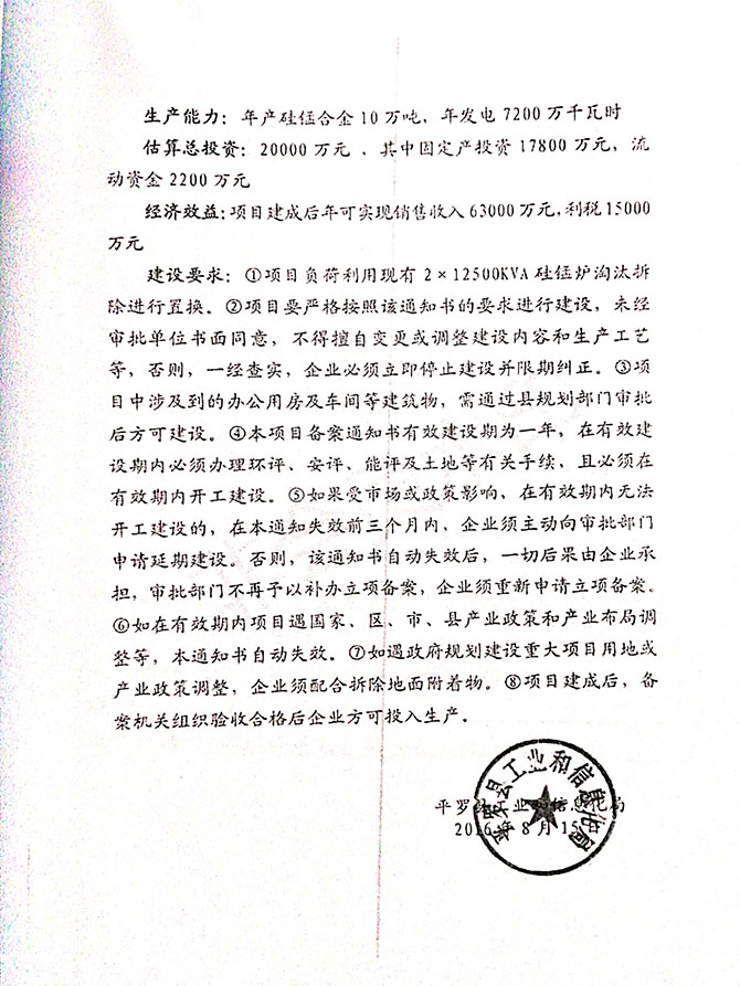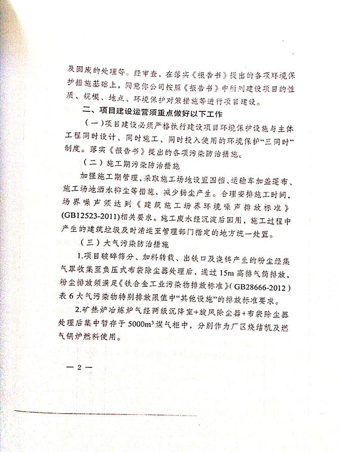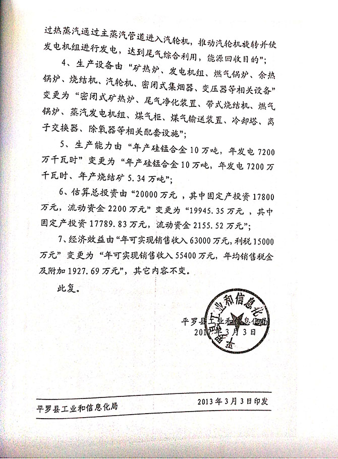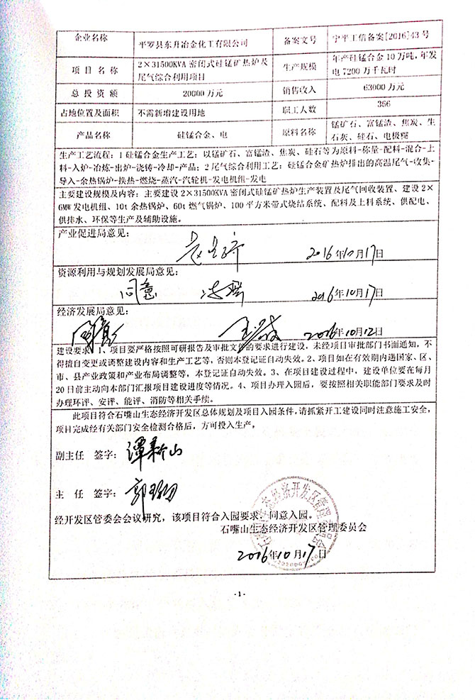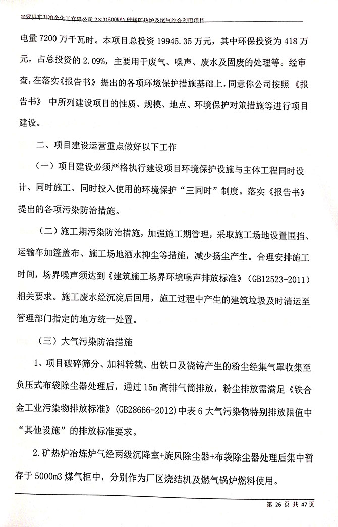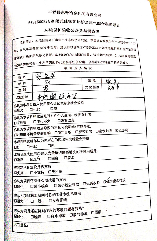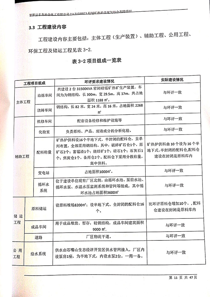 2019 年 5 月 19 日平罗县东升冶金化工有限公司组织环评方、竣工环 境保护验收监测单位及三位专家组成验收小组,对 2×31500KVA 密闭式硅 锰矿热炉项目(以下简称该项目)进行阶段性竣工环境保护验收,现将验 收意见公示如下: