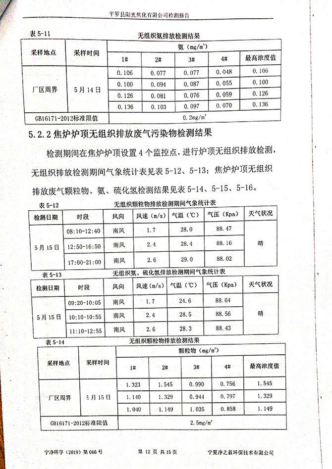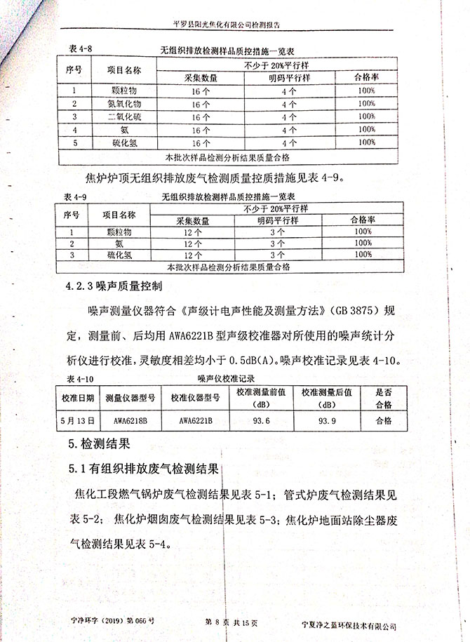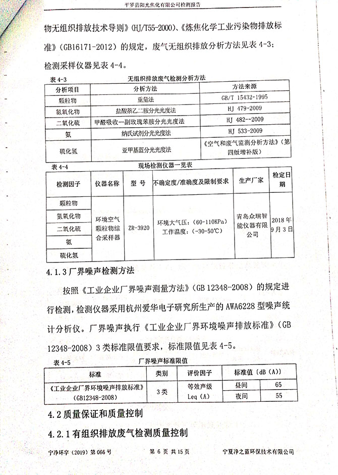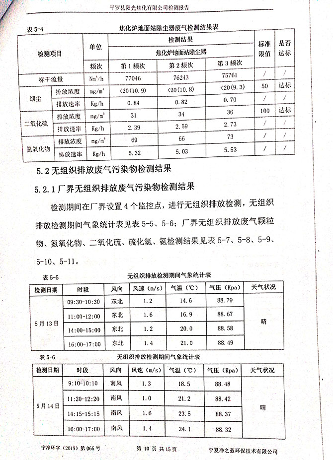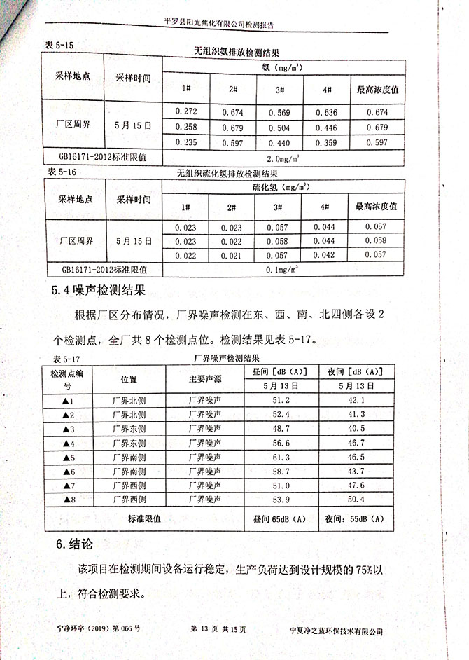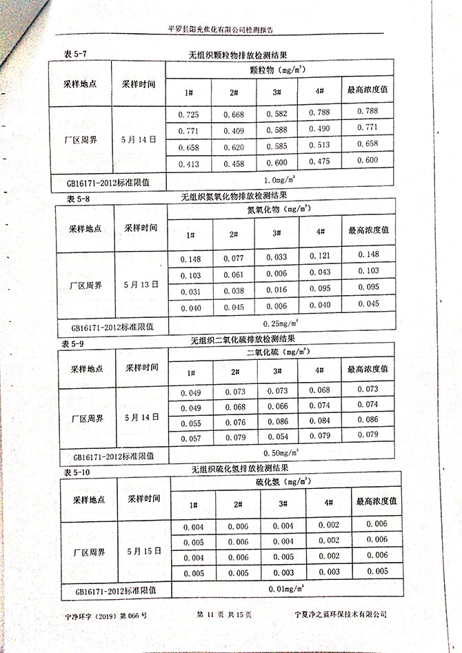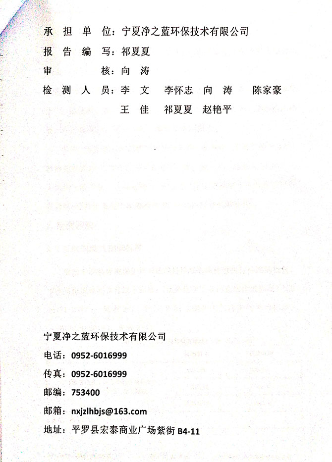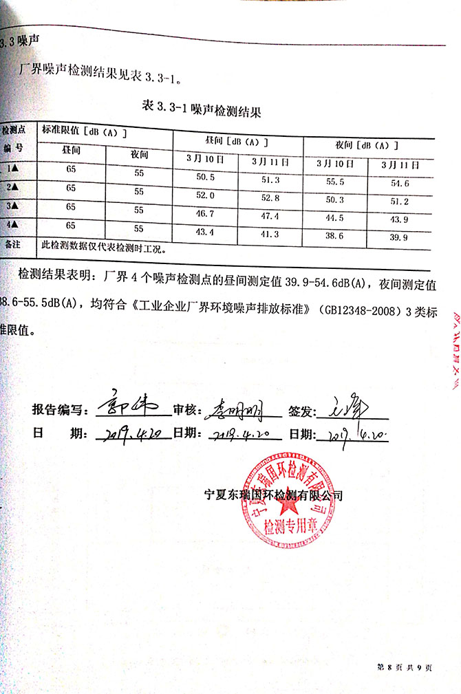 2019 年 3 月 10~11 日,委托宁夏东瑞国环检测有限公司对该项目进 行了竣工环境保护验收监测,结果如下: